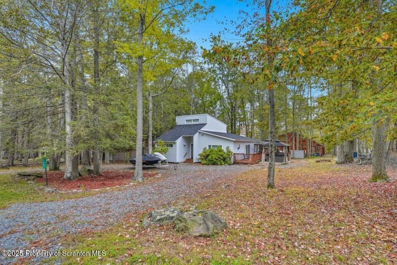 This stunning contemporary-style residence in Wallenpaupack Lake Estates seamlessly blends modern comfort with outdoor leisure, having undergone significant upgrades to elevate its appeal. Featuring three spacious bedrooms and two fully renovated bathrooms, the home offers an open floor plan with a cathedral ceiling in the living room, where a cozy, newly-installed wood-burning fireplace adds warm
