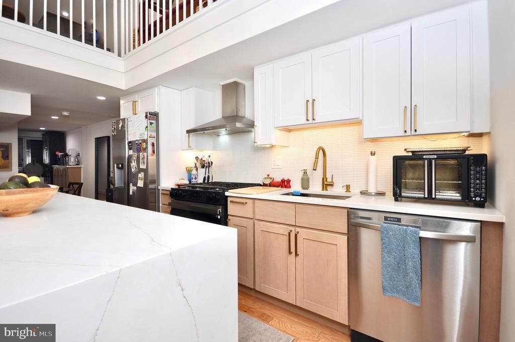 Located on a quiet, tree-lined street in Rittenhouse Square, this updated 3-bedroom, 2.5-bath brick townhome offers comfortable city living across multiple levels. The main living area is bright and inviting, with a modern fireplace and clean finishes. Just a few steps down, the kitchen features stainless steel appliances, ample cabinet space, a pantry, a waterfall island for casual dining, and a convenient powder room on the same level. The second floor includes two well-sized bedrooms with good closet space and a shared full bath. The top floor is dedicated to the primary suite, offering high ceilings, a skylight, its own fireplace, custom closets, nearby laundry, and a spacious bathroom with dual sinks, a soaking tub, and a walk-in shower. A private patio with turf provides an easy-to-maintain outdoor space. Close to restaurants, shops, theaters, public transit, major highways, South Street, UPenn, museums, parks, and the Delaware River, this home offers both a great location and everyday convenience.