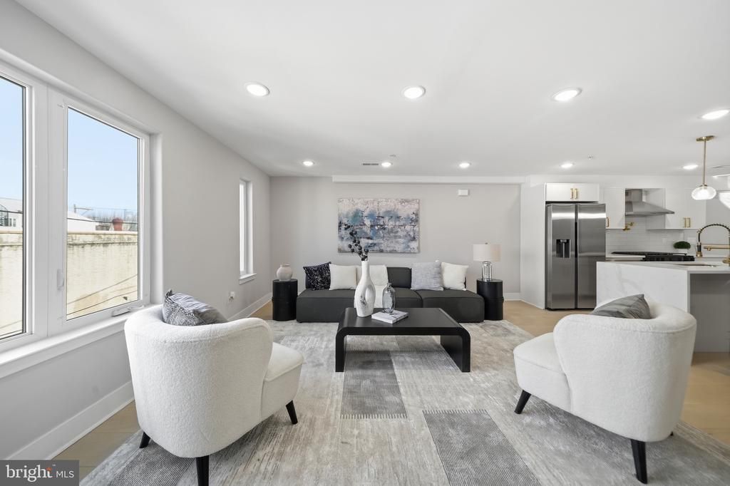 Seller is offer 2/1 buy down . Welcome to Moyamensing Square , an exciting new construction planned community with 24 chic residences in the heart of Pennsport ! These units are bi-level with an open floor plan. This Penthouse unit that gets lots of natural sunlight and has roof top deck with 360 views city and Bridges. Features include wide-plank hardwood floors, custom Kitchen cabinets, quartz countertops, and recess lighting, and great city views from each floor. Main floor has living, room , dinning room, and kitchen. Upper floor has Primany bedroom with ensuite bathroom . Across the hall is two more bedrooms and bathroom. This unit has 1 CAR GARAGE ! Builder is offering one year home warranty and tax abatement. This a very walkabout neighbor hood that has Dickinson Square park just one block away and Hermanns coffee. There are plenty of restaurants and shopping near by including Target and Ikea . There is still time to pick finishes . Take a look at the attached brochure . Pennsport is one of the most storied Philadelphia neighborhoods around with its vibrant dining, boutiques, and shops are the best of the modern world. New Construction. Square footage total includes above grade space and below grade space and is estimated. Taxes and square footage to be verified by the buyer. Renderings are for marketing purposes only. This Unit has upgraded floors and upgrade Kitchen and custom tile.