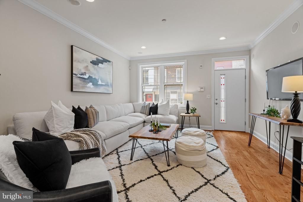 Welcome to this beautifully designed three-story home in East Kensington, Philadelphia. Offering approximately 1,900 sq ft, this 3-bedroom, 3-bath residence features an open-concept living and dining area with hardwood floors, oversized windows, and abundant natural light. The gourmet kitchen is equipped with granite countertops, stainless steel appliances, a polished mosaic backsplash, and ample cabinet space, with a door leading to a private backyard, perfect for relaxing or entertaining. The fully finished basement with a full bathroom provides flexible space for a guest suite, office, or home gym. Upstairs, two bright and well-appointed bedrooms share a stylish full bath, while the entire third floor is dedicated to the primary suite. Primary suite is complete with crown molding, accent lighting, two spacious walk-in closets, partial skyline views and a spa-like bathroom with dual vanities and dual shower heads. Enjoy city skyline views from the expansive roof deck with built-in speakers and lighting. Just steps from Frankford Ave and the El, this home is ideally located near the best of Fishtown and East Kensington. Easy walk to some of Philadelphia’s top dining and coffee spots, including Picnic, Forin Cafe, Fiore Fine Foods, Emilia, Little Walter’s, Dreamworld Bakery, La Colombe, ReAnimator Coffee, Milkcrate Cafe, Suraya, Laser Wolf, and Pizzeria Beddia. Easy access to all public transportation and all major highways. Schedule your showing today!