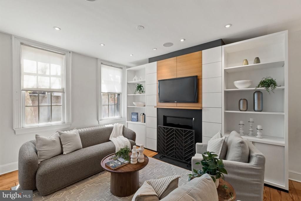 Welcome to 2123 Cypress, a stunning residence located on a quiet, tree lined street in Rittenhouse Square. Offering over 1,500 square feet, this 4 bedroom, 2.5 bath residence seamlessly combines modern upgrades with tasteful architectural detail, blending classic Philadelphia character with contemporary design. The main level features hardwood flooring throughout, a gas fireplace, custom built-ins, and multiple exposures that flood the home with natural light. A glass entry foyer leads to a spacious living and dining area ideal for both everyday living and entertaining, as well as a private outdoor deck. The kitchen has been thoughtfully upgraded with quartz countertops, stainless steel appliances, under-cabinet lighting, and additional cabinetry. Upstairs, the primary bedroom offers oversized closets, a wood burning fireplace, and stunning hardwood floors. The remaining bedrooms are well proportioned and offer ample storage space and flexibility as bedrooms, offices, or additional living space.Completing this one-of-a-kind home is a partially finished basement with a half bath and fireplace, offering versatility as a media room, guest space, gym, or home office. Additional highlights include custom lighting, built-in speakers, and zoned heating and cooling. Perfectly situated in the coveted Greenfield School catchment, this residence provides easy access to fine dining, one-of-a-kind shopping, cultural destinations, and all major public transportation, with PENN, CHOP, HUP, Rittenhouse Square, and the Schuylkill Banks just steps away.
