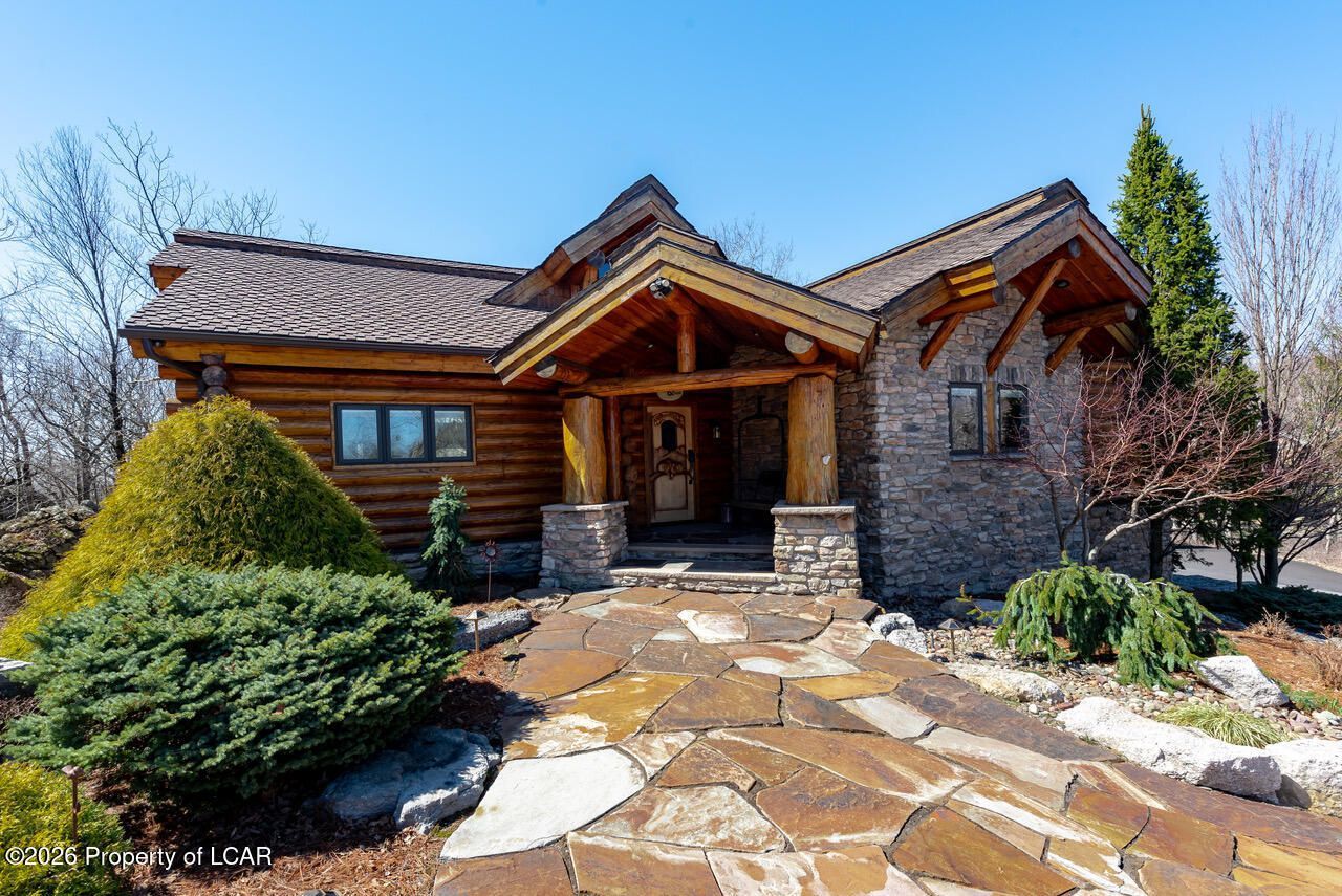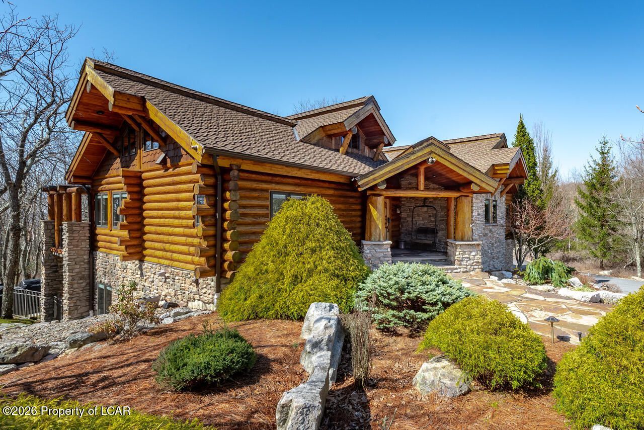 A truly exceptional log home with timeless character and mountain lodge appeal, a perfect setting situated at the end of a peaceful cup-de-sac. This award-winning residence combines rugged stone and full-diameter Douglas fir log walls for unforgettable curb appeal. Custom designed and crafted by Precision Craft Log and Timber Homes from Idaho. The rock outcropping on the property's perimeter creates a natural grotto-like effect offering additional privacy for the backyard patio and outdoor kitchen. Inside, over 3,600 sq. ft. of thoughtfully designed living space offers comfortable low-maintenance living amid mature landscaping on 3 combined lots. The open floor plan and solid hickory wood floors create a warm, inviting atmosphere, while abundant windows frame serene views of wooded hillside surroundings. Accessibility and convenience elevate every day, an elevator provides effortless access from the first floor, making this home both functional and inclusive. Retreat to your luxurious owner's suite complete with a jetted tub and his and hers closets - a blissful sanctuary after a day of golf, skiing, hiking or relaxing by the community pools. The entire home has been freshly repainted in 2025, offering a pristine backdrop for daily living or entertaining. The lower level is a perfect area for entertaining that includes a wet bar, dishwasher, ice maker and a 500 bottle capacity, climate-controlled wine cellar. A built-in 1 car garage and detached garage with workshop and adjacent parking pad provide ample parking. Additional highlights include expansive living spaces that are perfect for gatherings and private outdoor terraces. All HVAC and water heaters have been recently updated. The roof was reshingled in 2020 and the exterior was washed and stained in 2024. Easy access to Eagle Rock's remarkable 4 season amenity package offers 2 golf courses, lakes, pools, tennis, pickleball, bocce, corn hole, recreation center, equestrian center, fitness, skiing, trails, dining and more. This is much more than a home - it is a year-round escape where comfort, rustic elegance and thoughtful design come together in one unforgettable package.