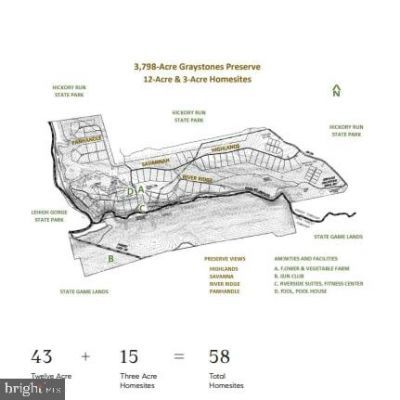 Welcome to Graystones Preserve! This first-class enclave, with a multitude of recreational options, provides an exclusive opportunity for a select group of buyers to collectively own 3,798-acres of private preserve including a personal 3 or 12-acre homesite on stunningly beautiful, peaceful property in the Mountains of Northeastern Pennsylvania. Graystones Preserve features 73 homesites (twelve-acre homesites and three-acre homesites). Twelve-acre homesites are listed between $750,000 and $975,000 and three-acre homesites run between $595,000 and $675,000; each providing privacy, view corridors, accessibility, and river or panoramic vistas. Consistent with the theme of self-reliance, each homesite will have its own well and septic. Literally surrounded by 62,000 acres of state parks, the rolling hills of this valley overlook Graystones Preserve's renowned 3.5-mile trout stream complete with waterfalls, big trout and bald eagles. These strategically positioned homesites have 25-mile, uninterrupted views. The preserve will be adding carefully planned amenities and services to create a connected experience while also featuring privacy. Once an initial group of homesites are purchased, Preservation Graystones LLC will transfer ownership of the entire preserve to a new Preserve Owners LLC. The new LLC will own all of the common areas of the preserve (the entire preserve with the exception of the homesites) and construction will begin on amenities and infrastructure. The Preserve offers a unique combination of privacy, luxury, and accessibility where owners will enjoy a range of activities, carefully designed amenities, and the opportunity to simply relax amidst the sights and sounds of nature. Amenities will include: 9 master suites, A lodge with a great room and entertainment kitchen, Game room, New Dock, Swimming pool with 25-Mile View, Tended Organic Vegetable and Flower Gardens, 200-Acre Open Meadow, Gun club (including skeet, trap, and sporting clays), Fitness facility, and a Fly-tying room. An array of services including maintenance, cleaning, grocery delivery, and local chefs available to owners. Easy access around the preserve via walking, hiking, biking, and ATVs. Robust Internet access for all suites and homes. Only an hour and a half drive from Philadelphia and two hours from New York City makes an easy meeting place to connect with like-minded nature lovers and a central place to gather with family. Graystones Preserve is five times the size of Central Park and twice the size of Fairmount Park in Philadelphia. Adults commonly feel a childlike sense of freedom and a familiar back-to-nature exhilaration. Taxes TBD.