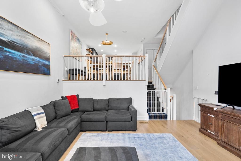 Welcome to this beautifully gut-renovated, sun-drenched home offering the perfect blend of style, space, and convenience. This stunning 3-bedroom, 2.5-bath residence features an airy open layout and secure gated access to your private garage parking. Step into a dramatic double-height living room filled with natural light, seamlessly connected to a modern open kitchen with sleek stone finishes and brand-new appliances. The dining area, complete with a custom built-in banquette, overlooks the living space—ideal for both everyday living and entertaining. Just beyond, a spacious south-facing deck provides the perfect setting for relaxing or hosting guests. Upstairs, you’ll find two generously sized bedrooms, a full bath, and a convenient laundry area. The top-floor primary suite is a true retreat, featuring private balconies, walk-in closets, and a luxurious en-suite bath with dual vanities and a beautifully tiled shower. The finished lower level adds flexible living space—perfect for a den, home office, or gym—along with a mudroom and ample storage throughout. Located in the Greenfield Elementary School catchment and steps to Independence Charter School as well as easy access to all transit lines, Rittenhouse and Fitler Squares, Marion Anderson playground and recreation center, two blocks to Avenue of the Arts, a block from the bustling restaurant scene on South Street—this home truly has it all.